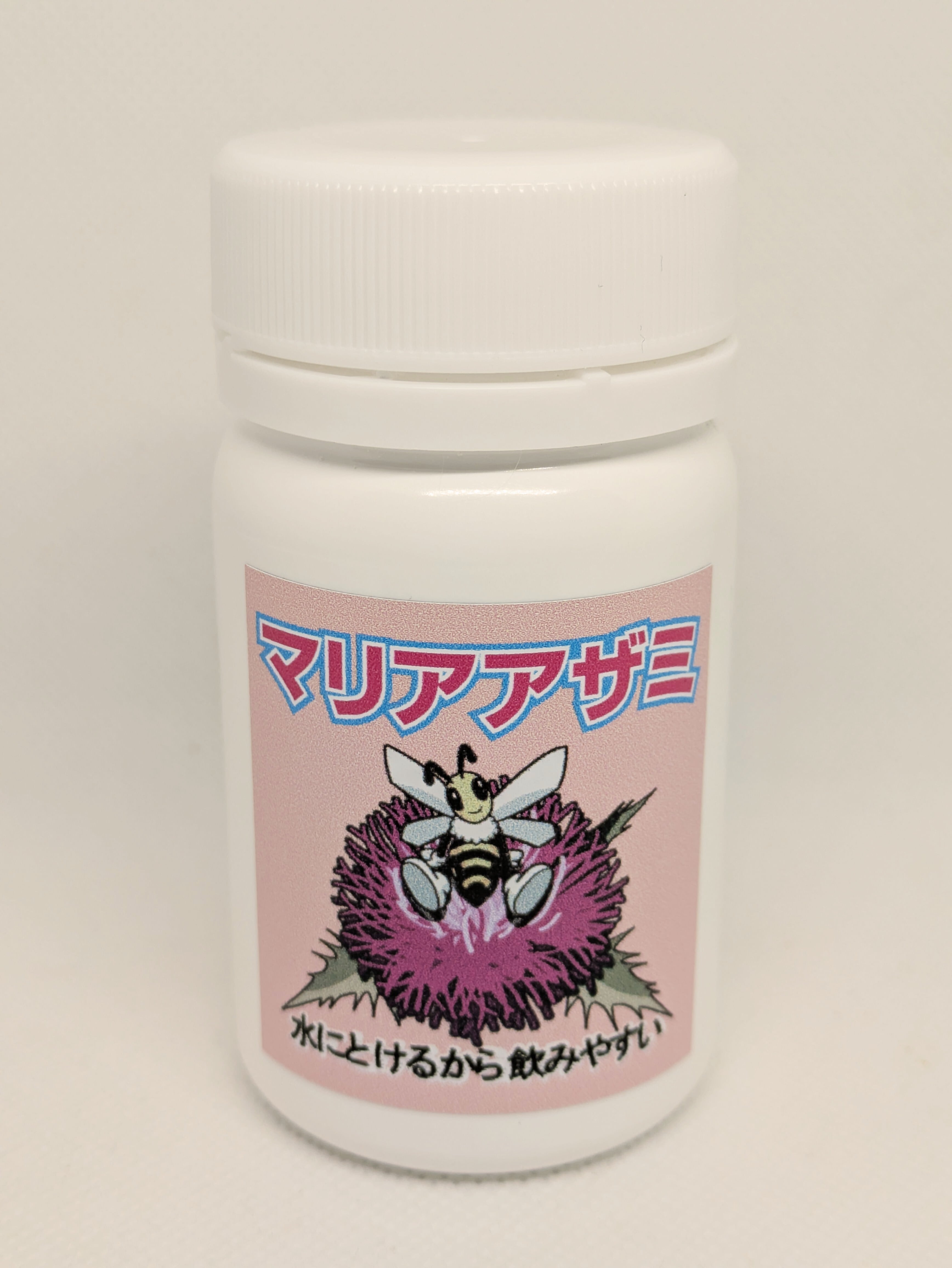 マリアアザミはヨーロッパで古くから使われてきたハーブで、別名「ミルクシスル」または、その成分から「シリマリン」とも呼ばれています。特有のフラボノイド類を含みますが、プロポリス同様、そのままでは水に溶けず、消化吸収されにくいという特性もあります。そこでアルビレオではプロポリスの加工技術を活かした製品づくりに着手しました。原料はスペイン産です。飲み物やヨーグルトなどに混ぜてお召し上がりください。