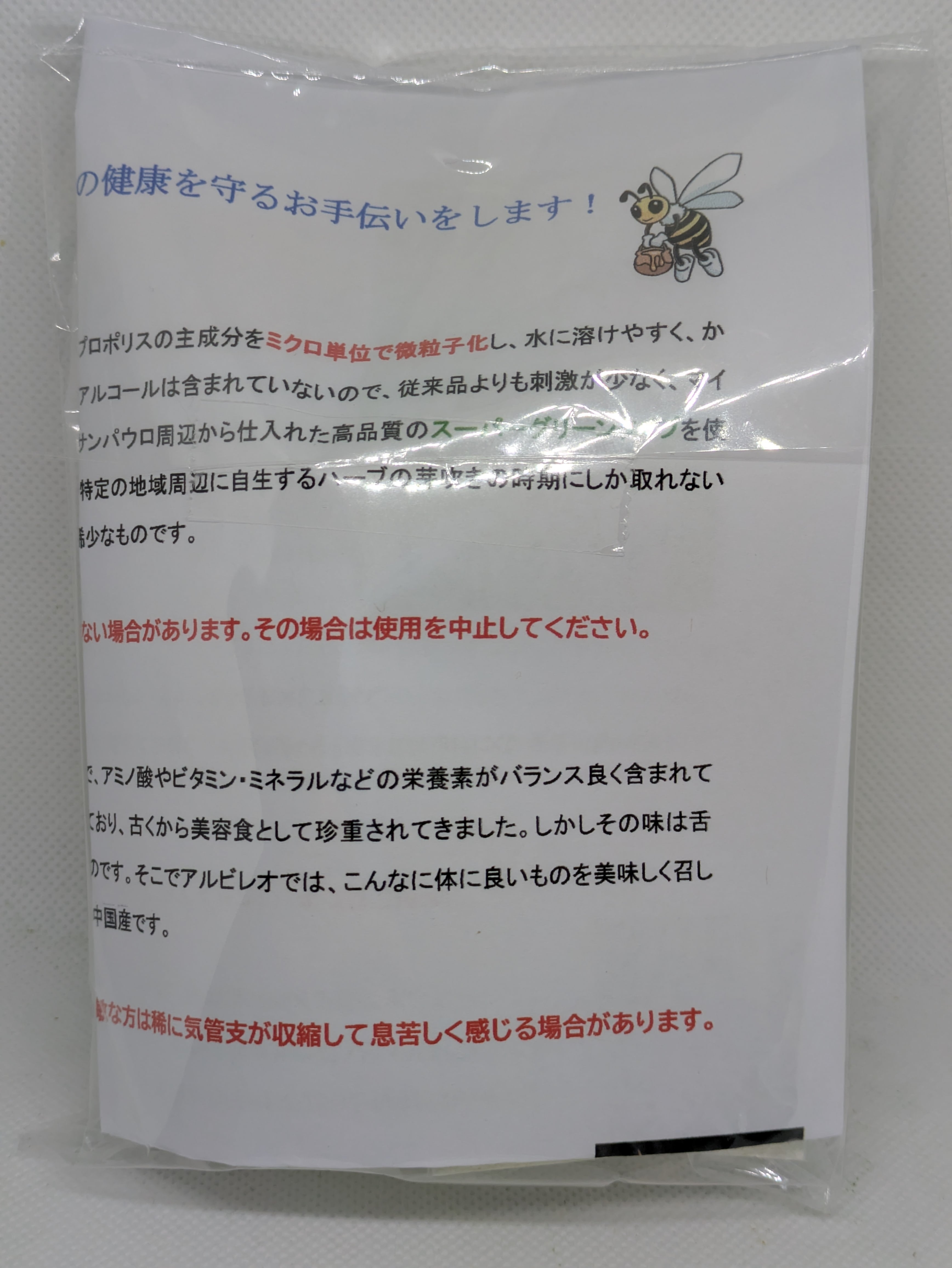 ブラジル・ミナスジェライス州で採れたスーパーグリーンプロポリスを、特殊な製法でアルコールを除去したパウダーに仕上げました。