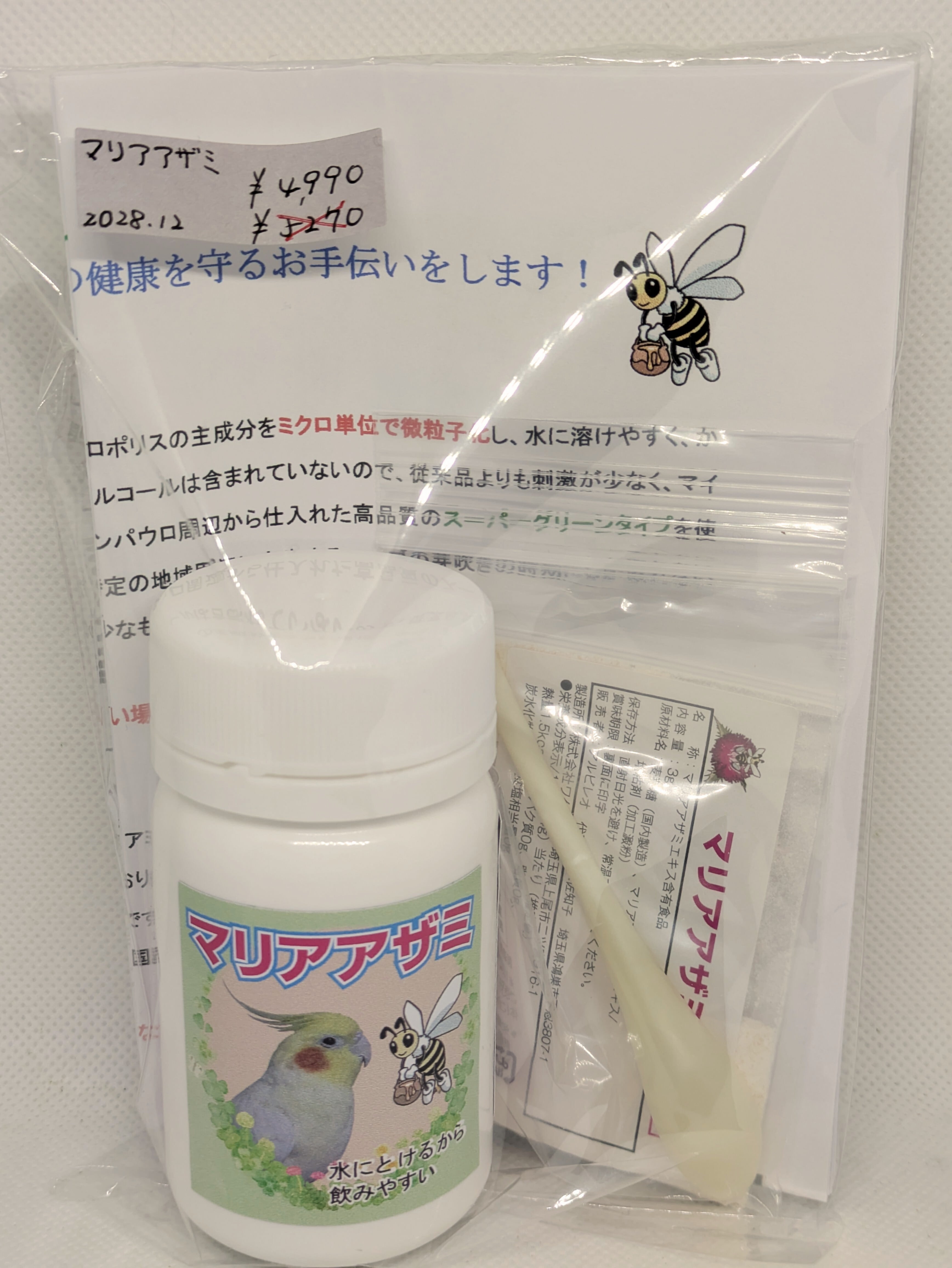 マリアアザミはヨーロッパで古くから使われてきたハーブで、別名「ミルクシスル」または、その成分から「シリマリン」とも呼ばれています。特有のフラボノイド類を含みますが、プロポリス同様、そのままでは水に溶けず、消化吸収されにくいという特性もあります。そこでアルビレオではプロポリスの加工技術を活かした製品づくりに着手しました。原料はスペイン産です。飲み物やヨーグルトなどに混ぜてお召し上がりください。