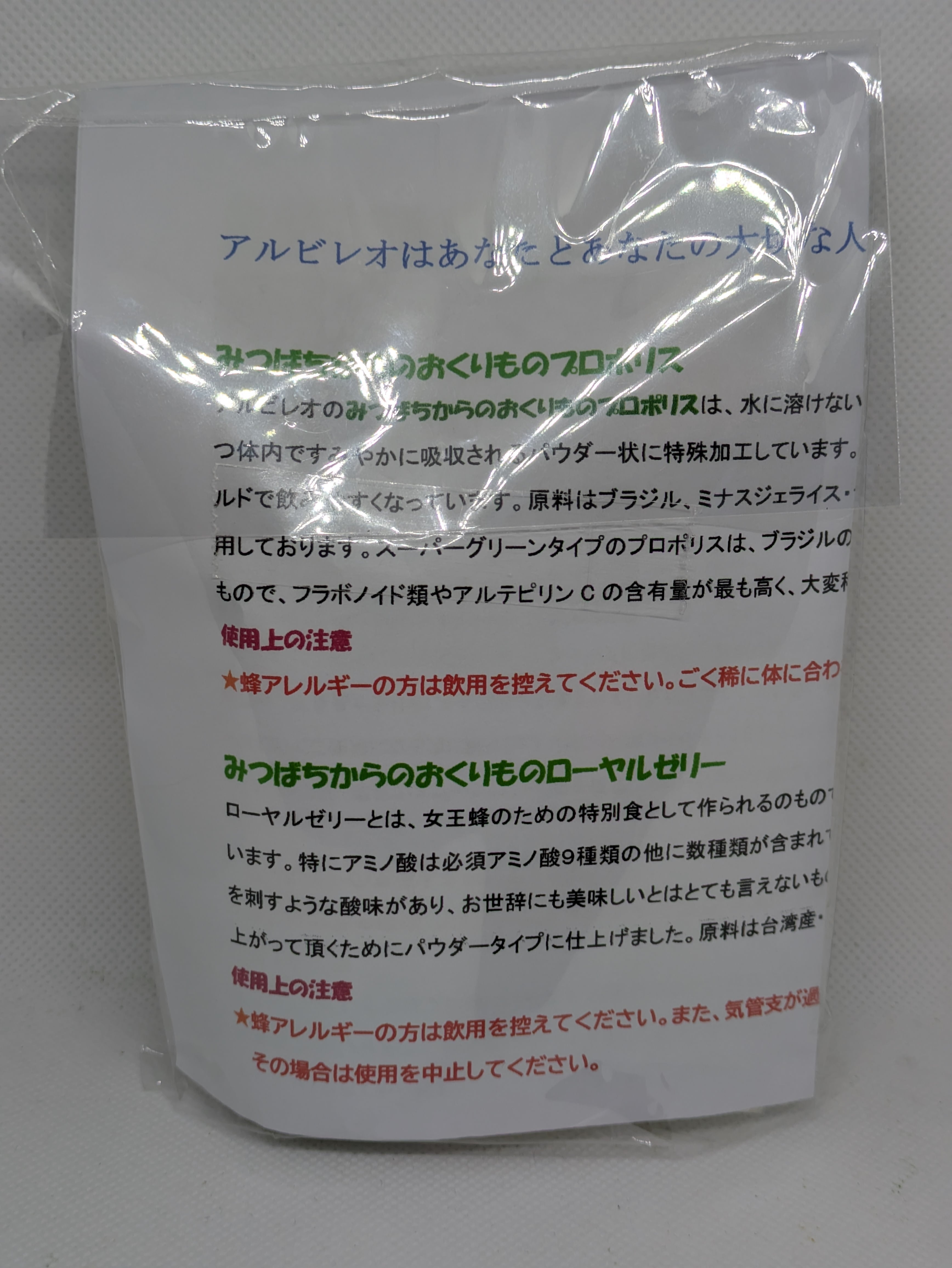 マリアアザミはヨーロッパで古くから使われてきたハーブで、別名「ミルクシスル」または、その成分から「シリマリン」とも呼ばれています。特有のフラボノイド類を含みますが、プロポリス同様、そのままでは水に溶けず、消化吸収されにくいという特性もあります。そこでアルビレオではプロポリスの加工技術を活かした製品づくりに着手しました。原料はスペイン産です。飲み物やヨーグルトなどに混ぜてお召し上がりください。