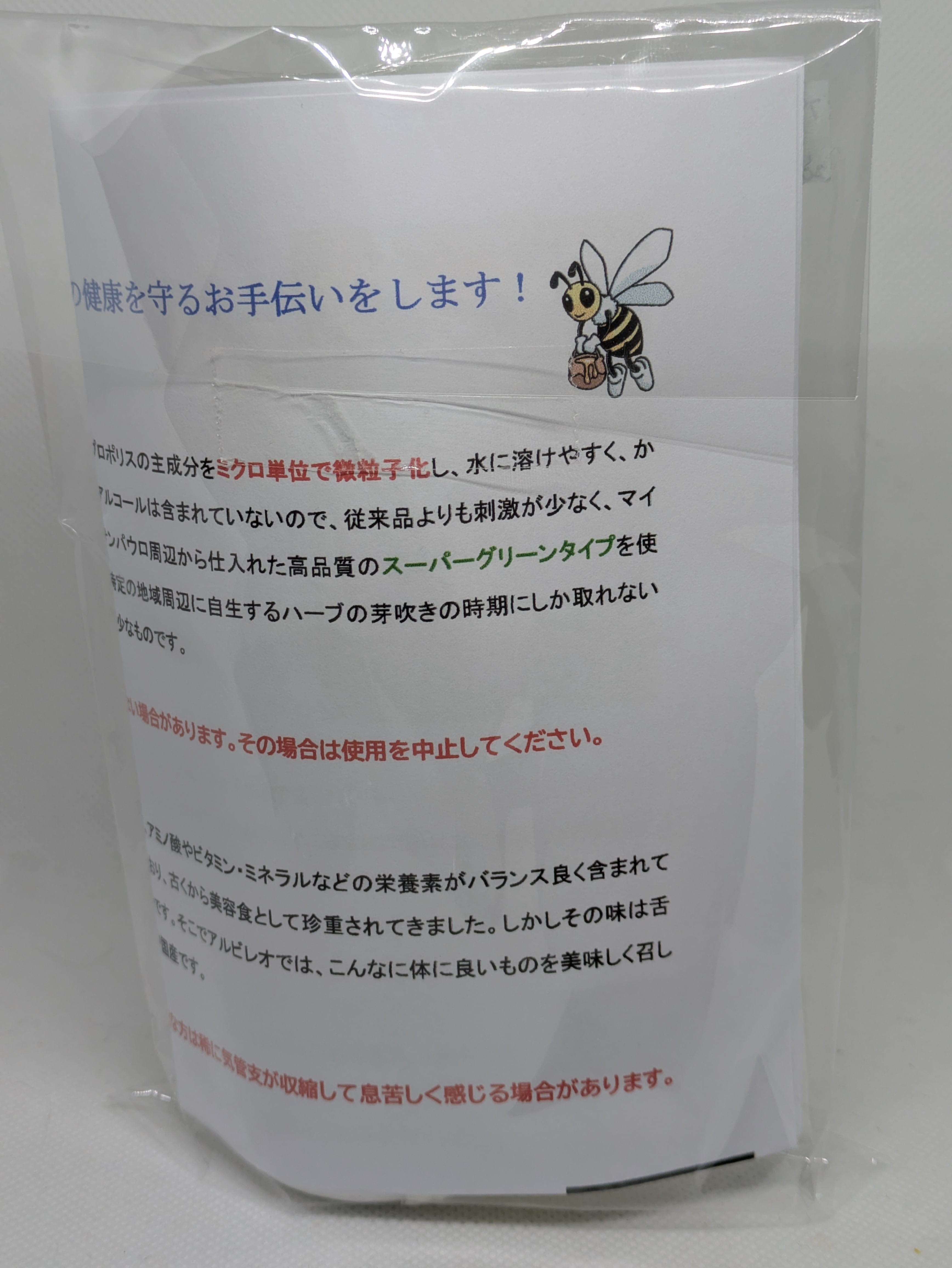 ブラジル・ミナスジェライス州で採れたスーパーグリーンプロポリスを、特殊な製法でアルコールを除去したパウダーに仕上げました。